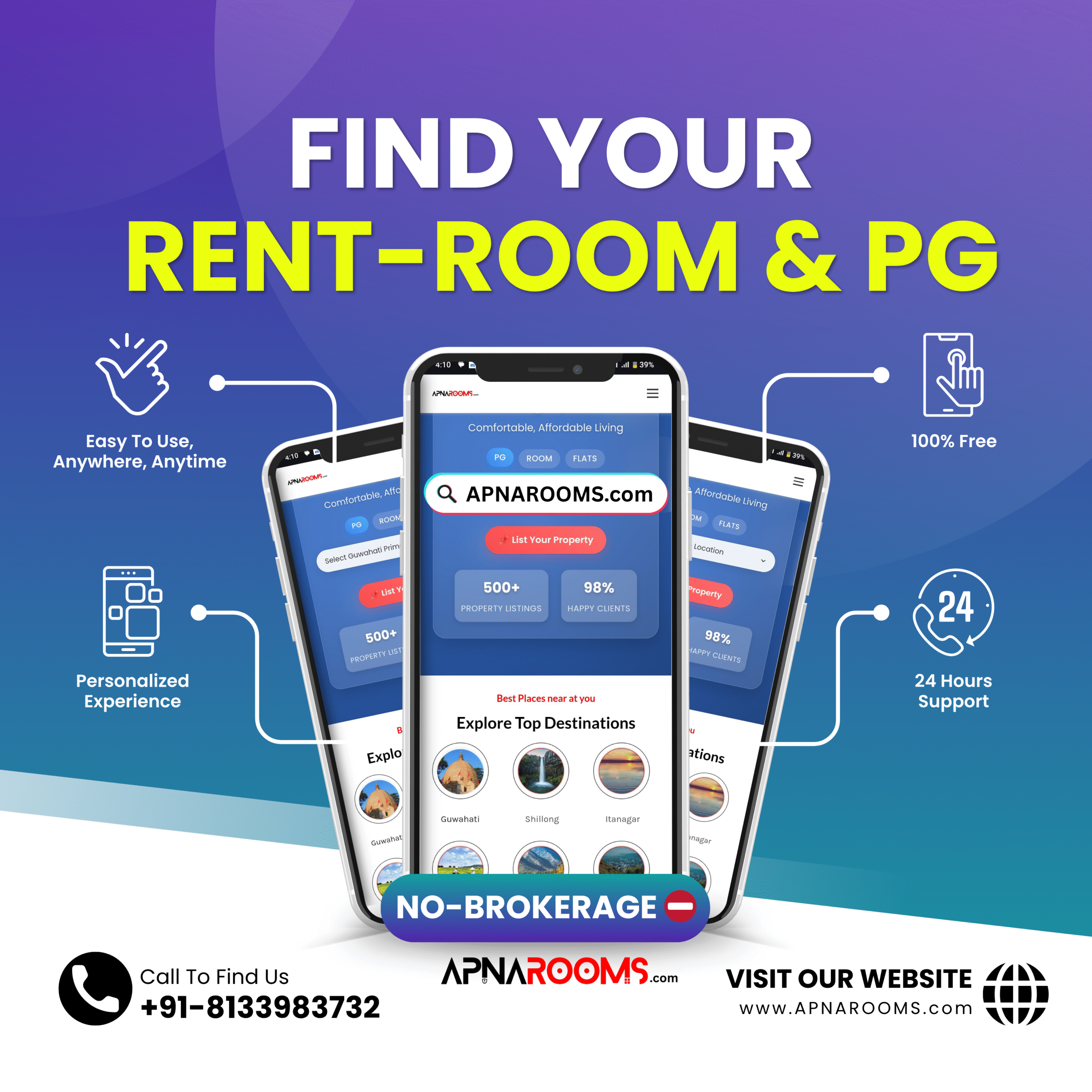 If you’ve been Googling “PG near me in Guwahati”, your search ends here. Apnarooms.com is the easiest and most trusted platform to find brokerage-free PGs with verified details.